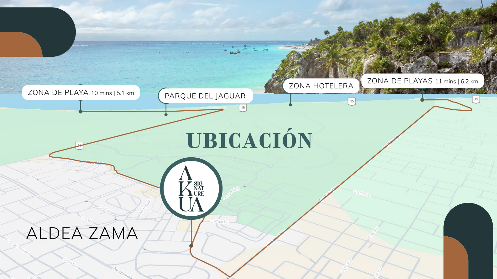 Dentro de la comunidad más exclusiva y consolidada . A solo 10 minutos de la zona de playas, Akua es la combinación perfecta entre cercanía al mar Caribe, la vibrante vida del centro de Tulum.
